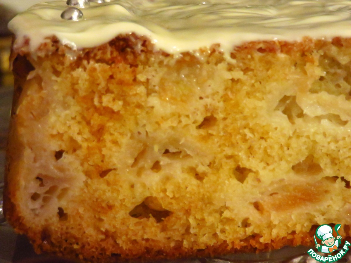 Я полила пирог белой готовой глазурью и украсила вот такими симпатичными яблочками- малышами ( консервированными, из банки ) -