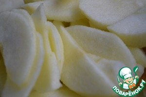 Яблоки помыть, очистить от кожуры, разрезать и удалить семенную коробку. Нарезать тонкими дольками.