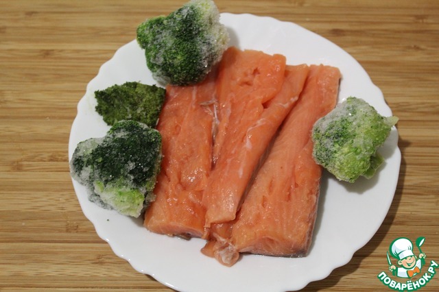 200 гр лосося положить в блендер вместе с брокколи, киноа, яйцом, солью, перцем и песто