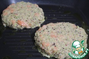Обжарить бургеры на смазанной оливковым маслом гриль-сковороде с двух сторон по 5 минут