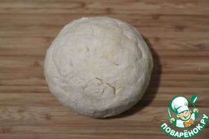В емкость выкладываем 125 гр масла, сахарную пудру, добавляем 1 яйцо, муку с разрыхлителем, замешиваем тесто и скатываем его в шар