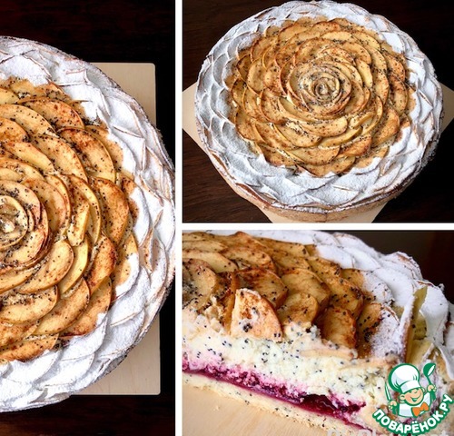Поэтому, у меня яблоки не в начинке с ягодами, а как украшение самого творожника. В творог добавила мак, и использовала как начинку вишню.