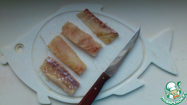 Рыбное филе нарезать палочками, у меня получилось примерно 3х7 см. Посолить.