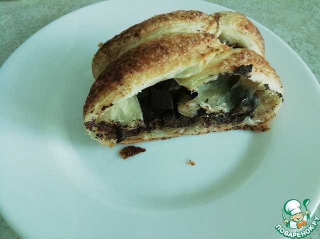 Рецепт «Быстрый десерт "Шоколадка в слоеном тесте"»: