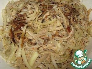На сковороде слегка поджарить кунжут, добавить к требухе.