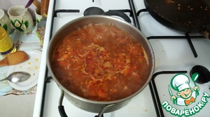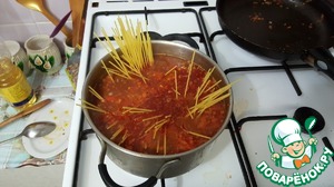 Как вода закипит, смело все содержимое сковородки отправляем в кастрюлю и ставим на средний огонь. -