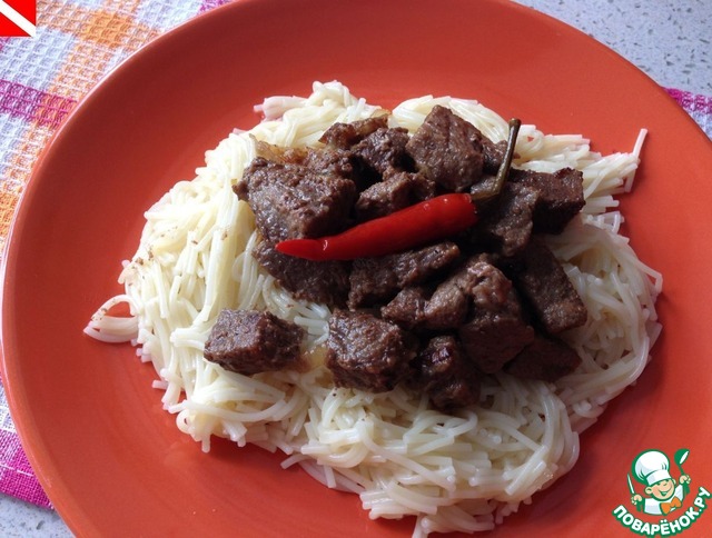 Изредка помешиваем мясо, что бы все кусочки купались в жидкости. Допустим остаток около 3 ст. ложек на дне.