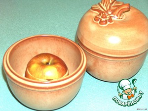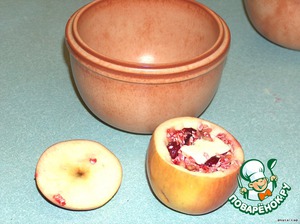 Из яблок вырезать середину и наполнить начинкой. Положить ч. л. сливочного масла сверху, и закрыть.