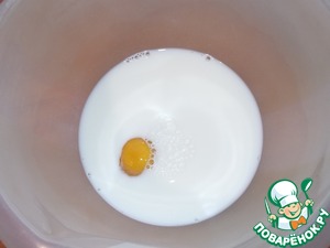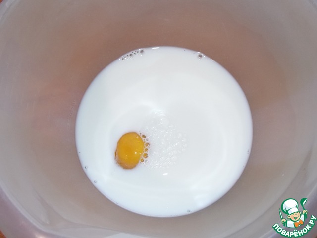 В молоко добавить яйцо, перемешать.