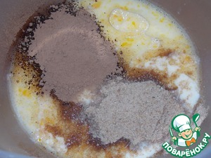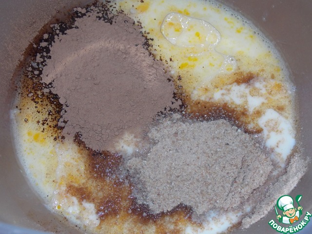 Всыпать какао и гречневую муку.