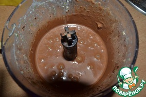 Выпарившийся соус вливаем обратно в блендер, добавляем шоколад, ст. л. какао без сахара и секрет от Джейм - 3 см банана, чтобы тот связал все воедино.