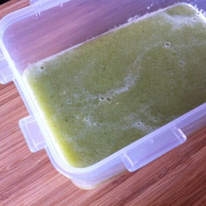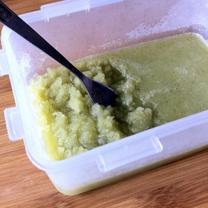 Когда на поверхности образуется корочка, разбить ее вилкой. Контейнер вернуть в морозилку.