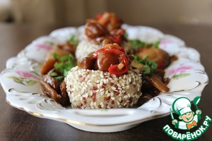 Выкладываем шары из киноа на блюдо и подаем с грибами