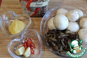 Чеснок брала домашний, ядреный, поэтому только 2 зубчика, у шампиньонов удалить ножки