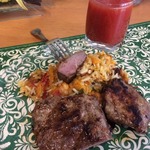На блюдо выложила горкой рис, затем печень и овощи, посыпала зеленью.