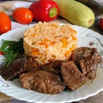 - Соль (1 ч.л. в рис, 1 ч.л. в печень, 1 ч.л. в овощи) — 3 ч. л.