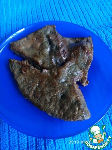 Быстро обжарила, как отбивные, по кусочку, минуты по 2 с каждой стороны на растительном масле на большом огне, тут главное, не передержать... печень будет мягкой и сочной внутри.