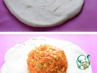Из начинки формируем шар и укладываем его на середину лепешки. -