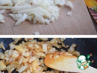 Лук порезать кубиками и обжарить на растительном масле до золотистого цвета.