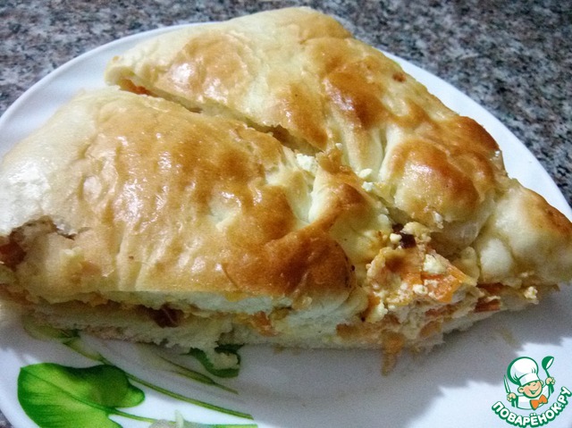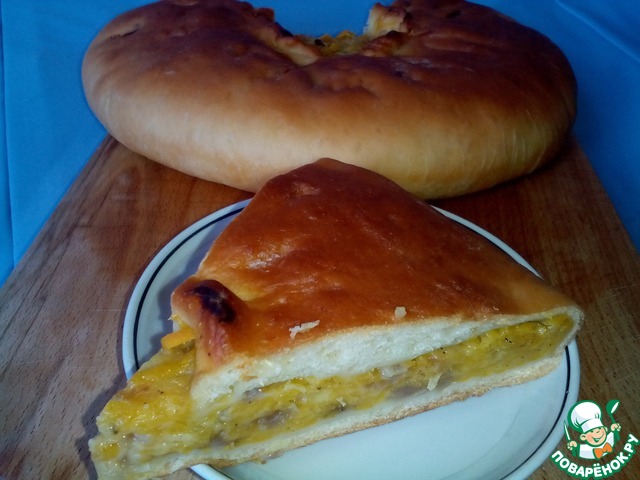 Сегодня я приглашаю всех любителей выпечки с тыквой к себе в гости. Предлагаю Вам попробовать очень простой в приготовлении и очень вкусный пирог (скорее я бы сказала лепешка с начинкой). Корочка пирога после выпечки смазывается сливочным маслом и от этого получается очень мягкой, нежной и с приятным сливочным вкусом. Рецепт взят из коллекции "Пироги Осетии, Грузии, Татарстана".