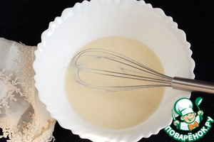 Добавить молоко, масло растительное, разрыхлитель, ванилин и все перемешать.