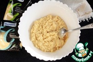 Добавить цедру одного лимона, натертого на мелкой терке (по желанию), молотый кус-кус и семолину (манная крупа) ТМ "Мистраль".