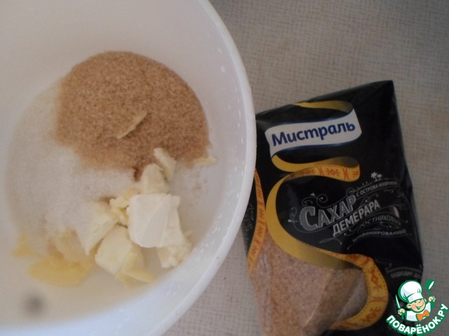 Сахар с маслом перемешиваем миксером до получения однородной массы.