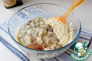 В яично-маслянную массу ввести банановое пюре, добавить корицу и молотый имбирь.