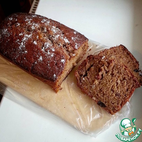 Вы еще не пробовали это кекс??? Это что то... Обязательно его испеките, уверена что результат вас очень порадует. Пеку его уже ни раз..., можно сказать что у нас в семье теперь он стал одним из самых любимых.. Насыщенный ароматом банана и меда, корицы и имбиря с большим количеством орехов и сухофруктов, он просто потрясающий!!! Еще один большой плюс, этот кекс лучше всего печь не из чисто белой муки а смешать с цельнозерновой или ржаной, тогда он будет еще и полезным, но и вкус оооочень хорош!! Сухофрукты и орехи на ваш вкус. Я настойчиво всем рекомендую его приготовить!!! Этот кекс просто бомба!!!