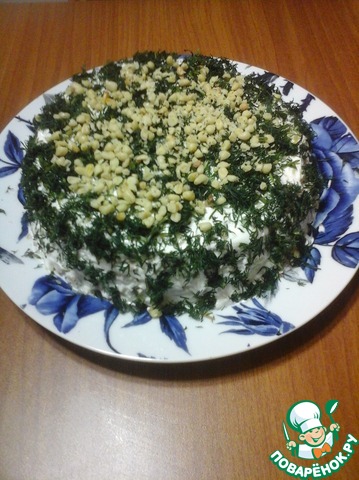 Сверху выкладываем рубленные грецкие орехи