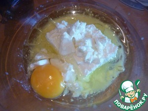Смешать разбухшие хлопья, яичную смесь...