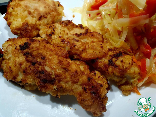 Куриную грудку обвалять сначало в муке, потом в яйце и наконец