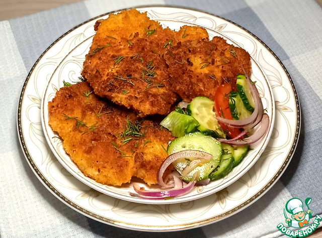 Куриную грудку нарезать на отбивные. Слегка отбить.