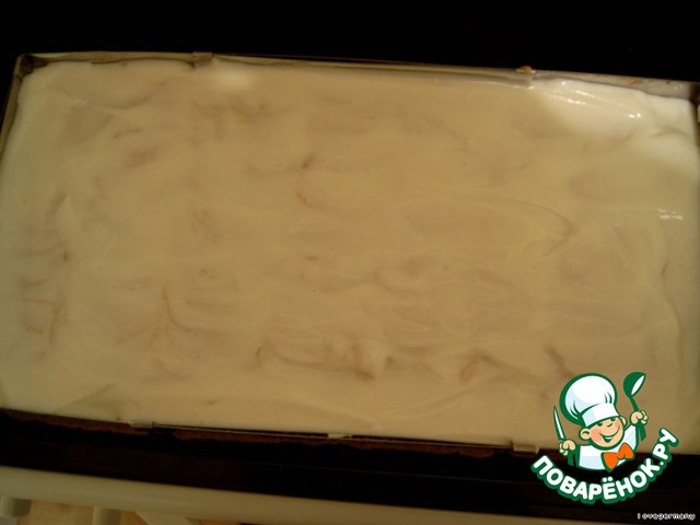 Вынимаем пирог из духовки и сразу же заливаем сметанной смесью. -