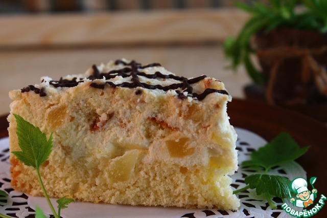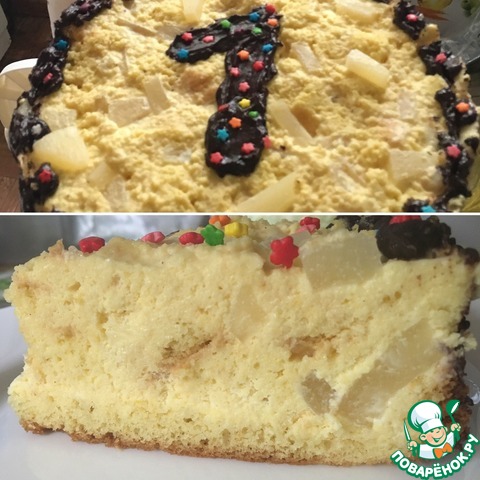 Уютный торт по-домашнему, вкусный, легкий и без помпезности, очень нежный. Бисквит, ананасы и сливочный мусс слились в единое целое, мы получили истинное удовольствие!