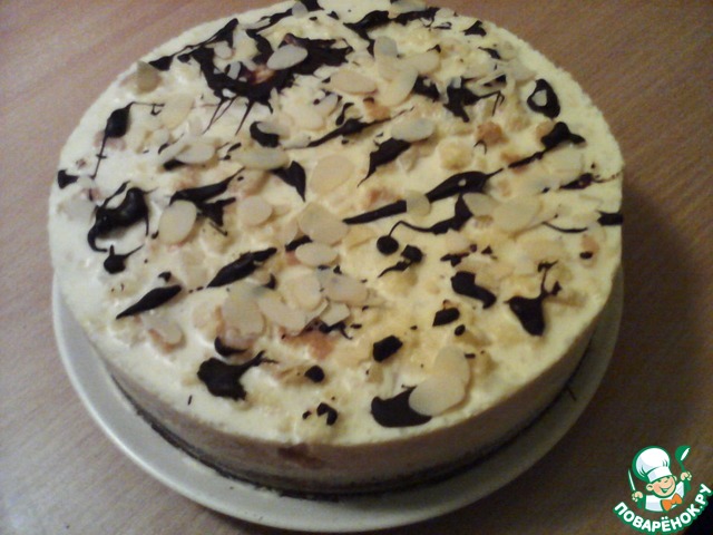 Достать, снять кольцо, полить растопленным шоколадом, посыпать миндалем -