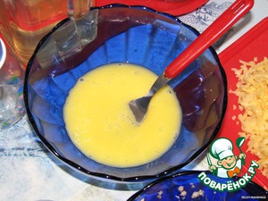 Дно и края глубокой формы смазать жиром (в моём варианте растительным маслом) и покрыть слоем хлебных крошек (я в этом случае посыпаю форму манкой).