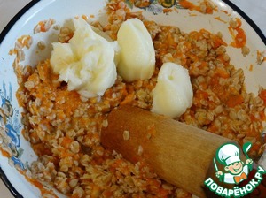 У меня осталась овсяная каша из крупных хлопьев после завтрака, а так же немного рисового гарнира, что и послужило основой для печенья. В рецептуре указано количество сырых продуктов.