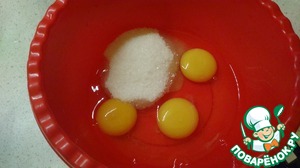 Яйца с сахаром взбить в крепкую пену.