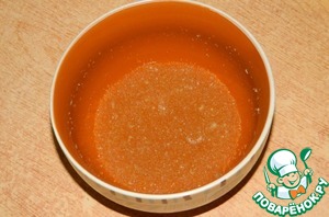 Желатин замочить в воде минут на 10. Затем нагреть до растворения. Не кипятить!