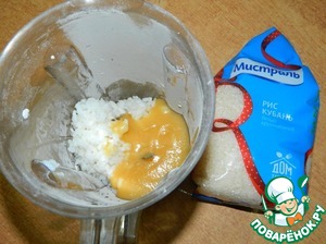 Отварной рис соединить с яблочным пюре и хорошо взбить в блендере до однородной консистенции.