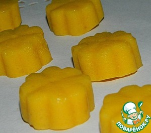 Ввести желатин в массу и немного взбить для воздушности. Для цвета я добавила каплю желтого пищевого красителя.