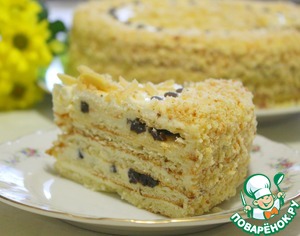 Торт с творожными коржами, нежным сливочным вкусом и легкой кислинкой чернослива. Нам очень понравилось!