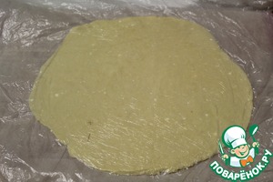 На бумаге для выпечки или силиконовом коврике через пленку раскатываем корж