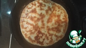 Жарим на медленом огне, чтоб тесто пропеклось. Переворачиваем и сразу смазываем маслом.
