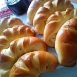 Очень люблю рецепты выпечки Марии Кудряшовой из цикла "честный хлеб", много уже пекла по её рецептам, один из любимых это рецепт халы, пеку её часто, сегодня из этого теста испекла рогалики, они такие пушистые, вкусные. Рецепт подкорректировала под себя, ингредиенты увеличила в полтора раза и округлила грамульки.