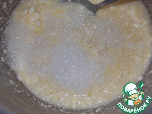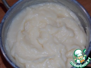 Отдельно смешать 1 яйцо с 200гр. сахара, 2ст. л. муки, 1ст. л. крахмала, 1ч. л. ванильного сахара и 50гр. молока. До однородной массы. Тонкой струйкой вылить полученную массу в кипящее молоко с маслом. Варить на медленном огне, постоянно помешивая 3 минуты.