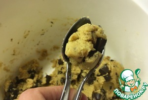 • Добавьте мучную смесь и перемешайте. Потом добавьте рубленый шоколад.