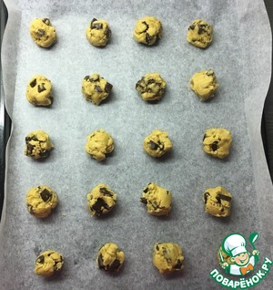 Слепите небольшие не сильно плотные шарики при помощи двух чайных ложек (руками получатся слишком плотные). Из данного кол-ва теста у меня получилось 35 шт и всё это влезло на два противеня. Шарики следует укладывать на расстоянии около 2 см друг от друга. Сверху не придавливать так как за вас всё сделает гравитация. :)