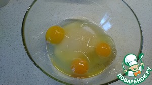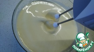 Яйца, сахар и ванильный сахар взбить миксером до увеличения объема в 2,5-3 раза и побеления.
